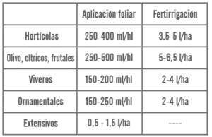 Aplicar 2-3 veces durante el ciclo de cultivo, tras la caída de pétalos y durante la etapa de formación, desarrollo y maduración de frutos.
